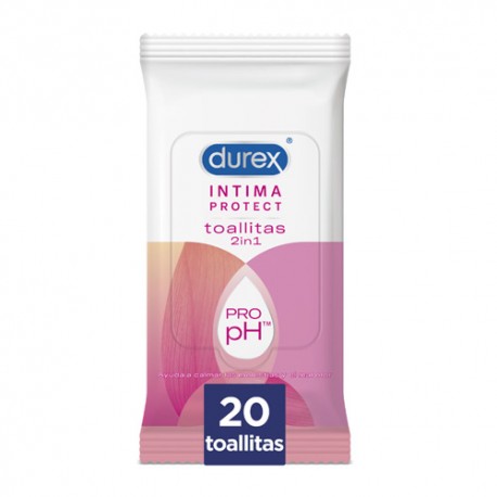 Durex Intima Toallitas Higiene 2 en 1 son una solución refrescante que ayuda a mantener un pH saludable y equilibrado de la zona íntima femenina. Las toallitas de Durex han sido creadas con la fórmula Pro-pH, que refuerzan la protección y el confort vaginal. Durex Intima Toallitas Higiene 2 en 1, que se presentan en envase de 20 unidades, están testadas dermatológicamente y son libres de colorantes artificiales.