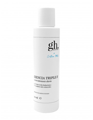 GEMA HERRERIAS GH ESENCIA TRIPLE H es ideal para todo tipo de piel y como base en la rutina diaria ya que debido al estilo de vida, la polución e incluso una higiene inadecuada del rostro, favorecemos la pérdida de agua transepidérmica obteniendo como resultado una piel apagada, con falta de luminosidad y deshidratada. MODO DE EMPLEO: Antes de aplicar cualquier serum, sobre la piel del rostro limpia, mañana y/o noche aplica la esencia directamente sobre el rostro con la ayuda de las palmas de las manos.