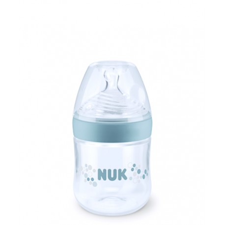 El biberón Nuk Nature Sense 1M de 150 ml cuenta con numerosos orificios finos para la succión que proporcionan un flujo líquido sosegado y natural al beber, imitando los conductos mamarios del pecho materno.