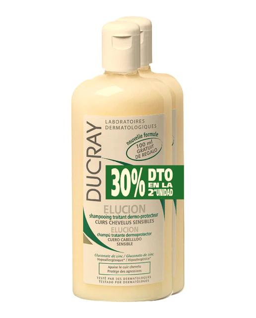 Elucion champú limpia su cuero cabelludo con total suavidad y limita los riesgos de recidivas de caspa. Formato: 2 x 400 ml.