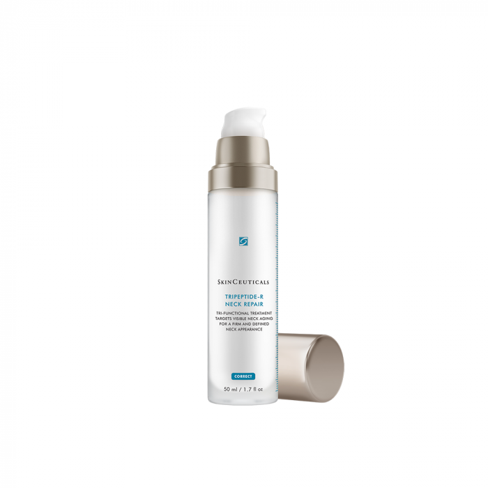 Tripeptide-R Neck Repair es un potente tratamiento corrector para el cuello con retinol que combate los signos de la edad reflejados en el cuello: firmeza, líneas horizontales, flacidez y acumulación de grasa. Formulado específicamente para la piel del cuello, una piel más sensible que requiere un tratamiento específico; por ello, se puede utilizar diariamente. Ayuda a reducir la apariencia de las líneas finas y mejora la apariencia de la firmeza gracias a los péptidos que contiene. Gracias a su contenido en retinol puro (0,2%), favorece la renovación celular para ayudar a mejorar la apariencia de las líneas finas, arrugas e hiperpigmentación. También se ha demostrado que ayuda a minimizar las imperfecciones y la apariencia de los poros. El complejo de Glaucina que contiene favorece la resistencia al envejecimiento visible de la piel del cuello. Ya puedes comprar este sérum de Skinceuticals.