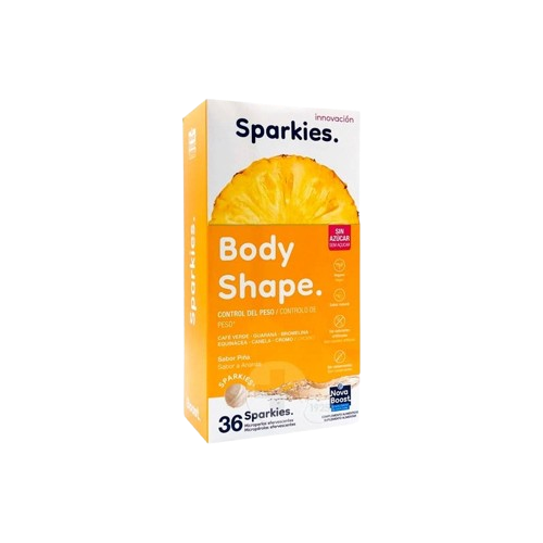 \r\n\r\n\r\nNovaboost Sparkies Body Shape 36comp es un complemento alimenticio en formato microesferas efervescentes a base de extractos vegetales como el café verde, la bromelina, el guaraná o la equinácea. Ayuda a mantener niveles normales de azúcar en sangre y funciona como coadyuvante en dietas para la pérdida de peso. Apto para veganos. Con sabor a piña. Contiene 36 comprimidos.\r\n\r\nModo de Empleo\r\n\r\n· Disolver 1 comprimido en un vaso de agua y tomar 1 a 4 veces al día.\r\n\r\n· No superar la dosis diaria recomendada.\r\n\r\n*Los complementos alimenticios no deben sustituir una dieta sana y equilibrada.\r\n\r\n