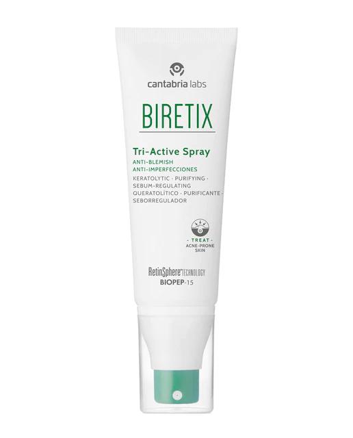 • Biretix Tri Active Spray es un tratamiento intensivo en formato spray, que permite una rápida y fácil aplicación en zonas extensas del cuerpo, como pecho y espalda.